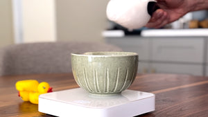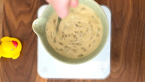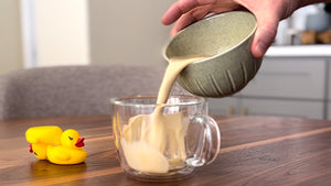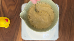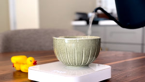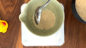 Pour 120g of (3.5oz) of hot water into glass. Note: We've found that 120g of hot water creates a balanced drink. If you prefer a stronger, creamier, and sweeter drink, you can adjust the amount of hot water to 100g.