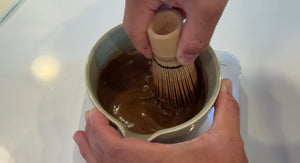 Pour 2 oz of hot water. Whisk in a "W" or "M" motion until you create a nice layer of foam.