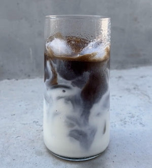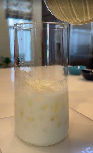 Add ½ cup of ice into glass with milk plus sweetner of your choice.